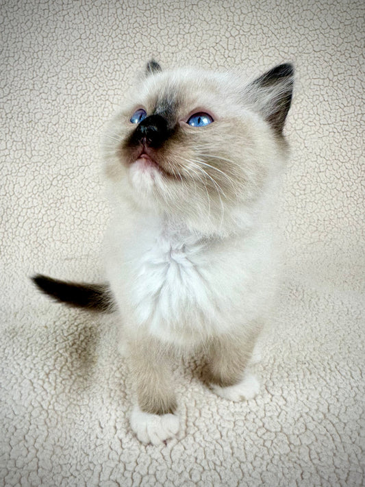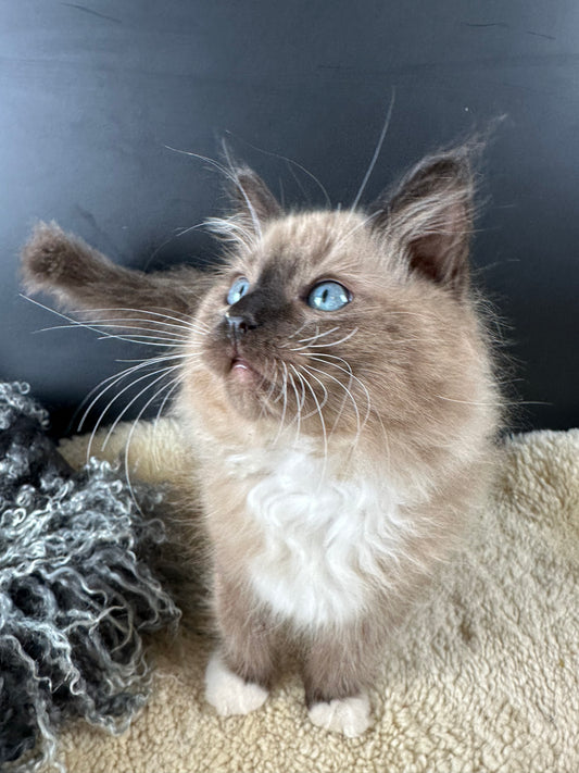 Cranberry - Seal Point Traditional Tortie mitted w Blaze - FEMALE - AVAILABLE 11/4/2025