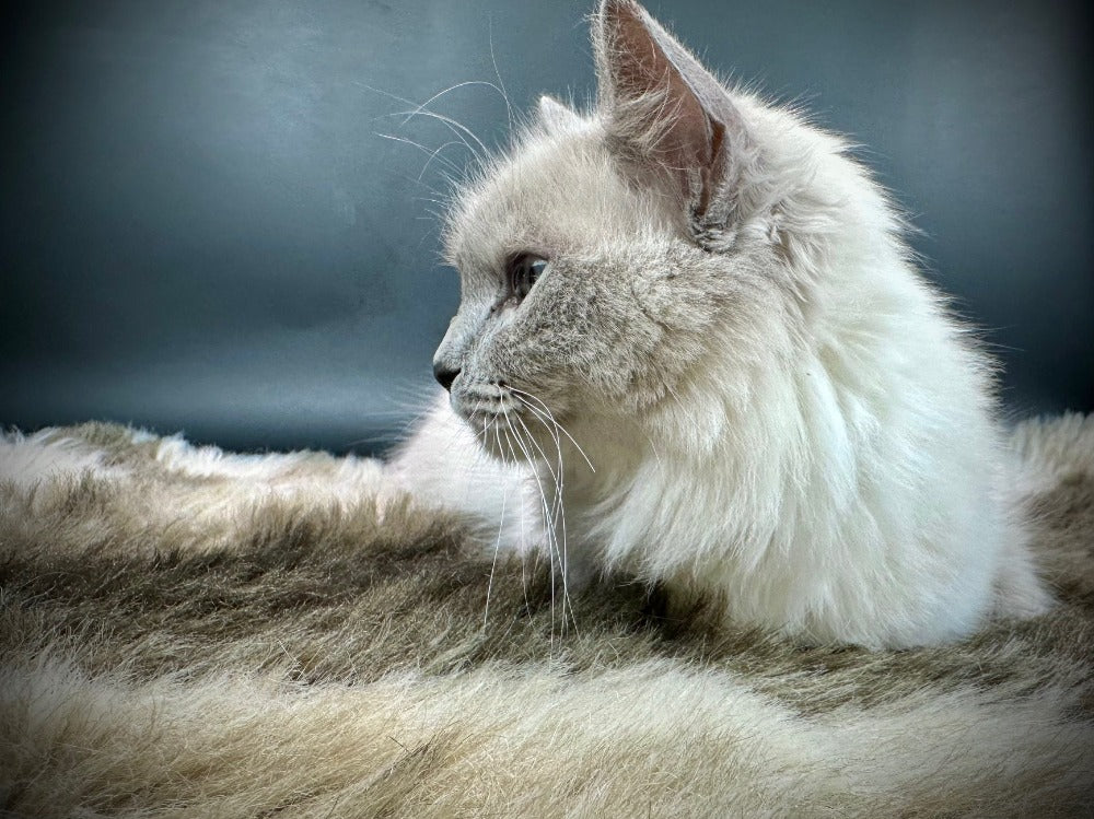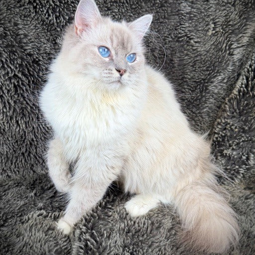 Diamond is our OG female, she is a seal mink mitted with unusual sapphire blue eyes. She has always been our most amazing breeding girl and will soon be handing over the title of Queen Bee over to her daughter Cattitude.