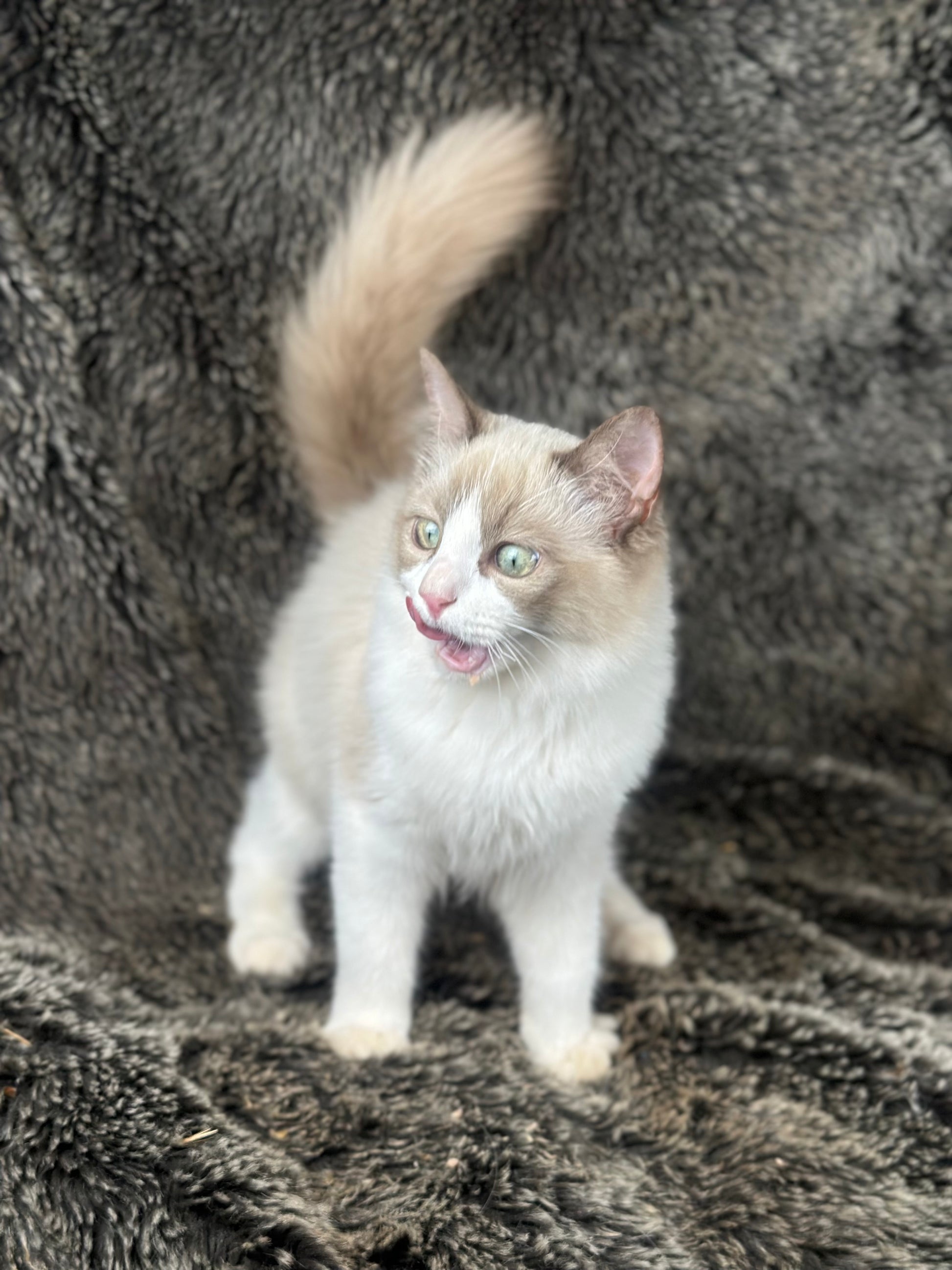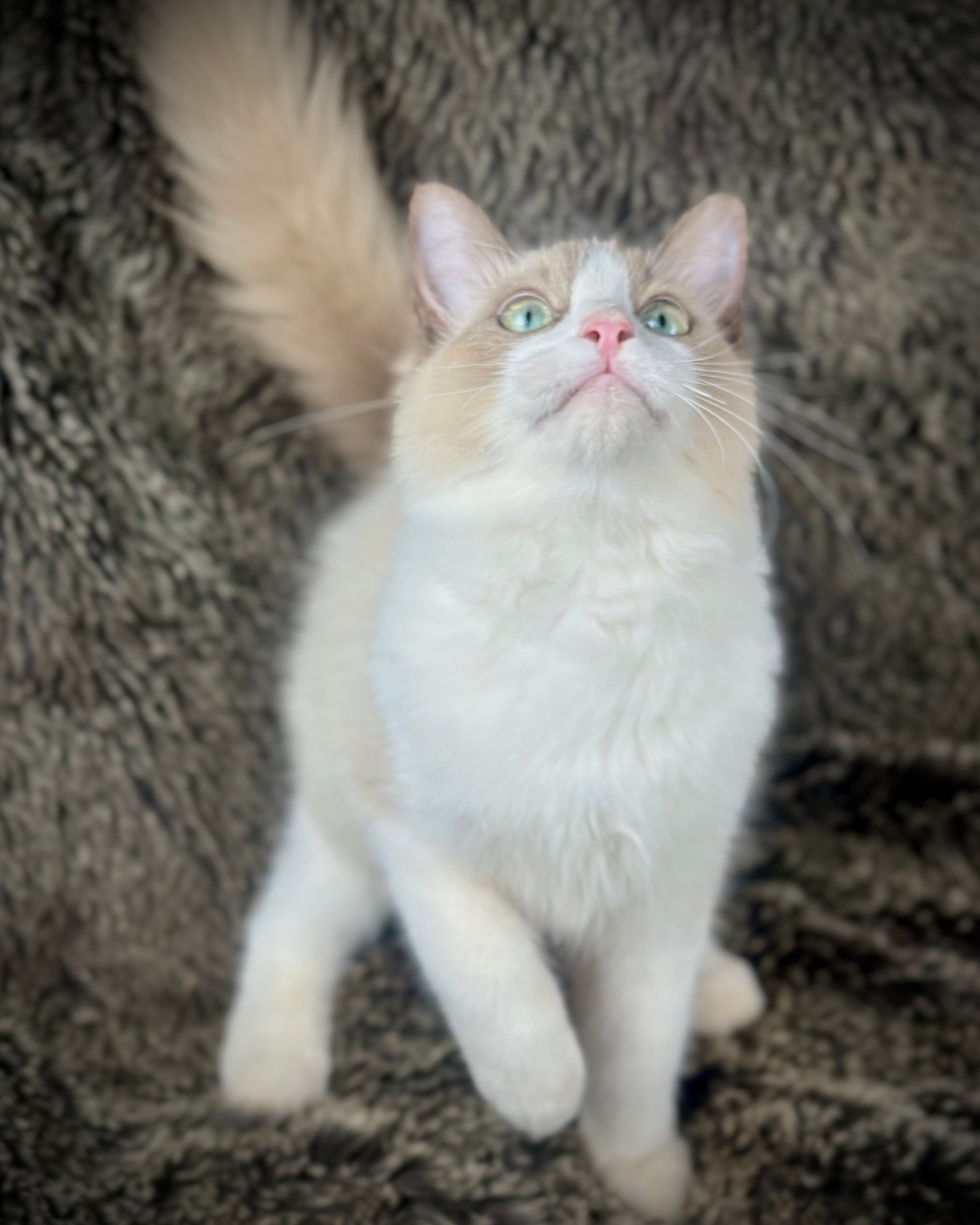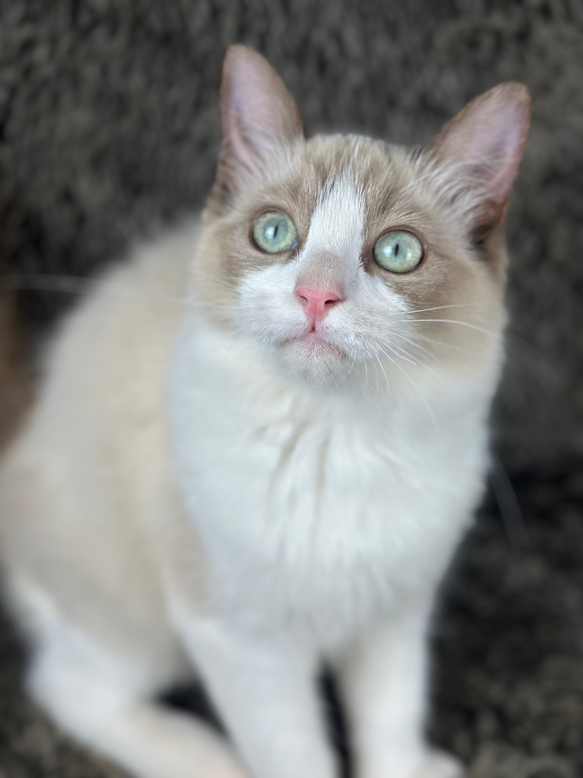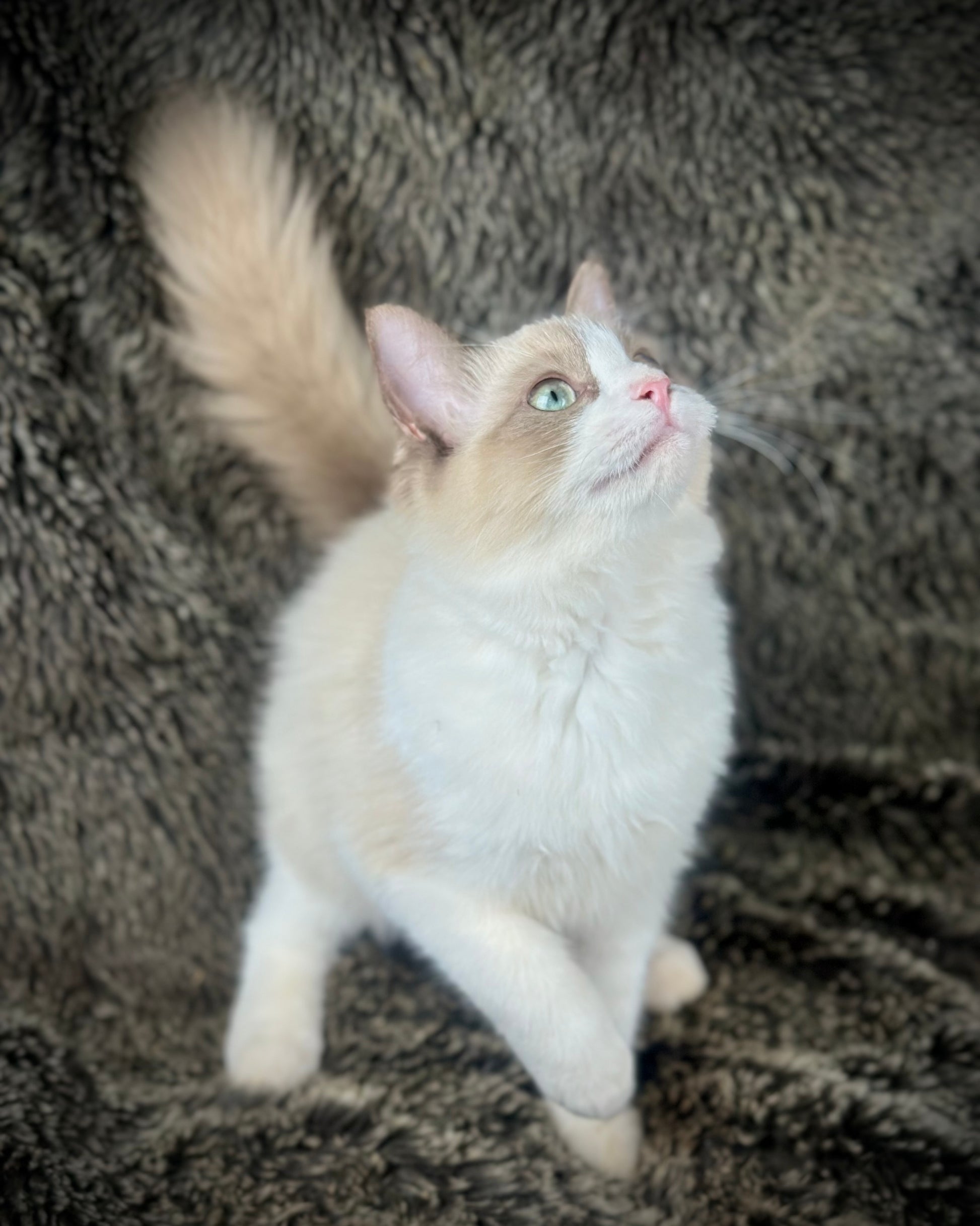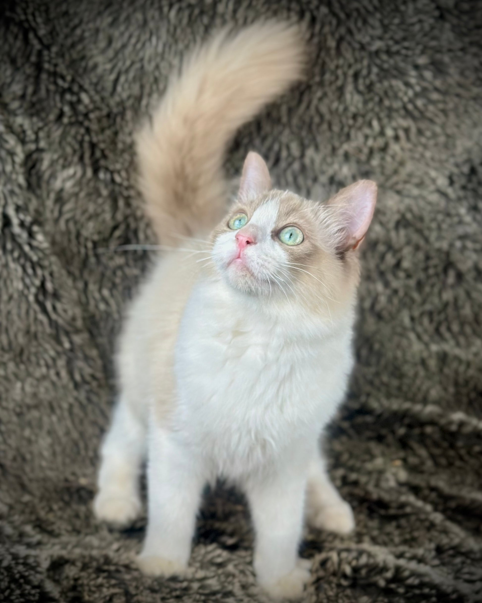 Freedom is a little free spirit full of purrs and play. Just look at those EYES!!!!!! She’s also a hard to find color/pattern combination. She will darken to a gorgeous rich caramel when her color comes in later. She’s a beauty.