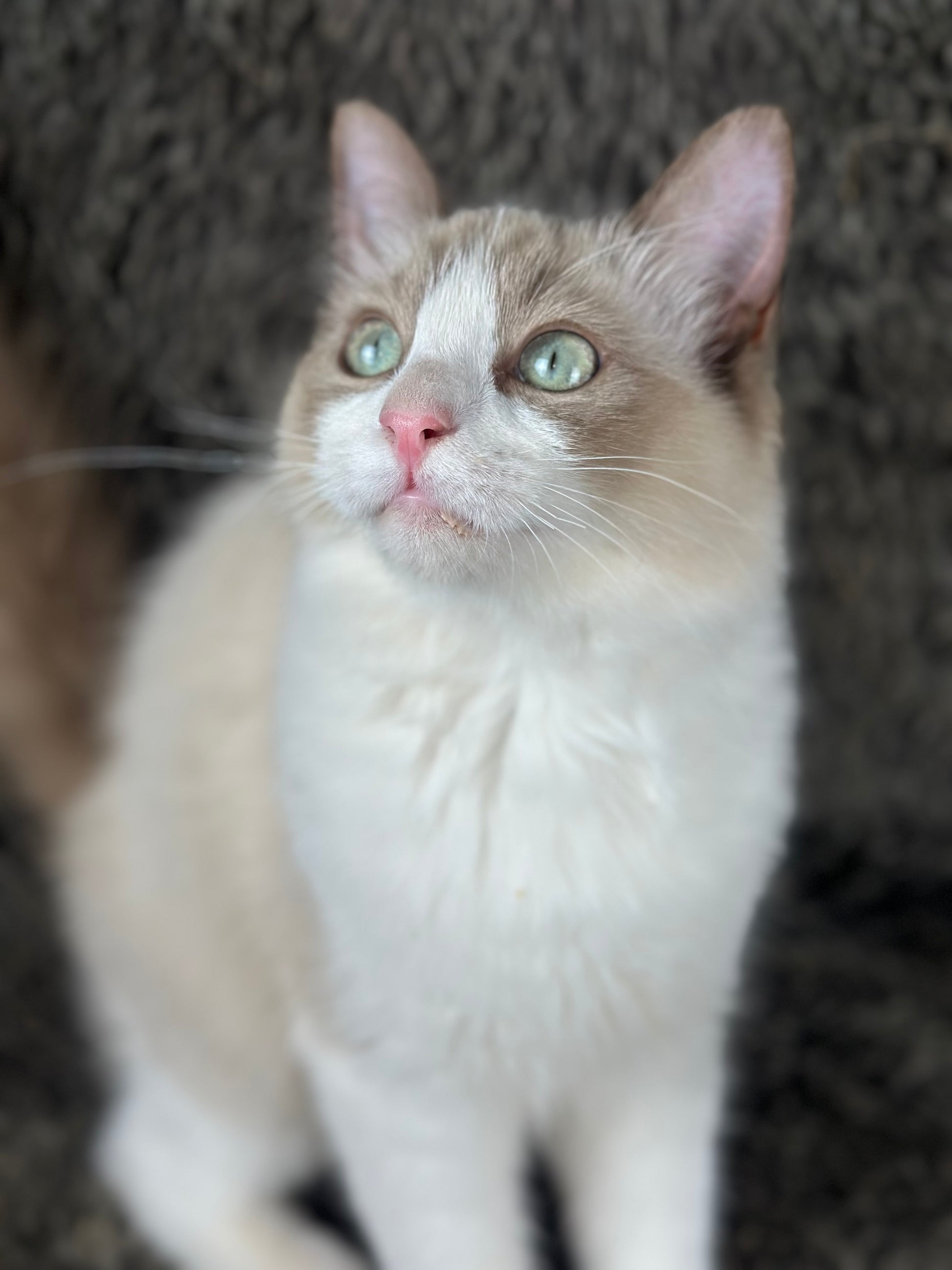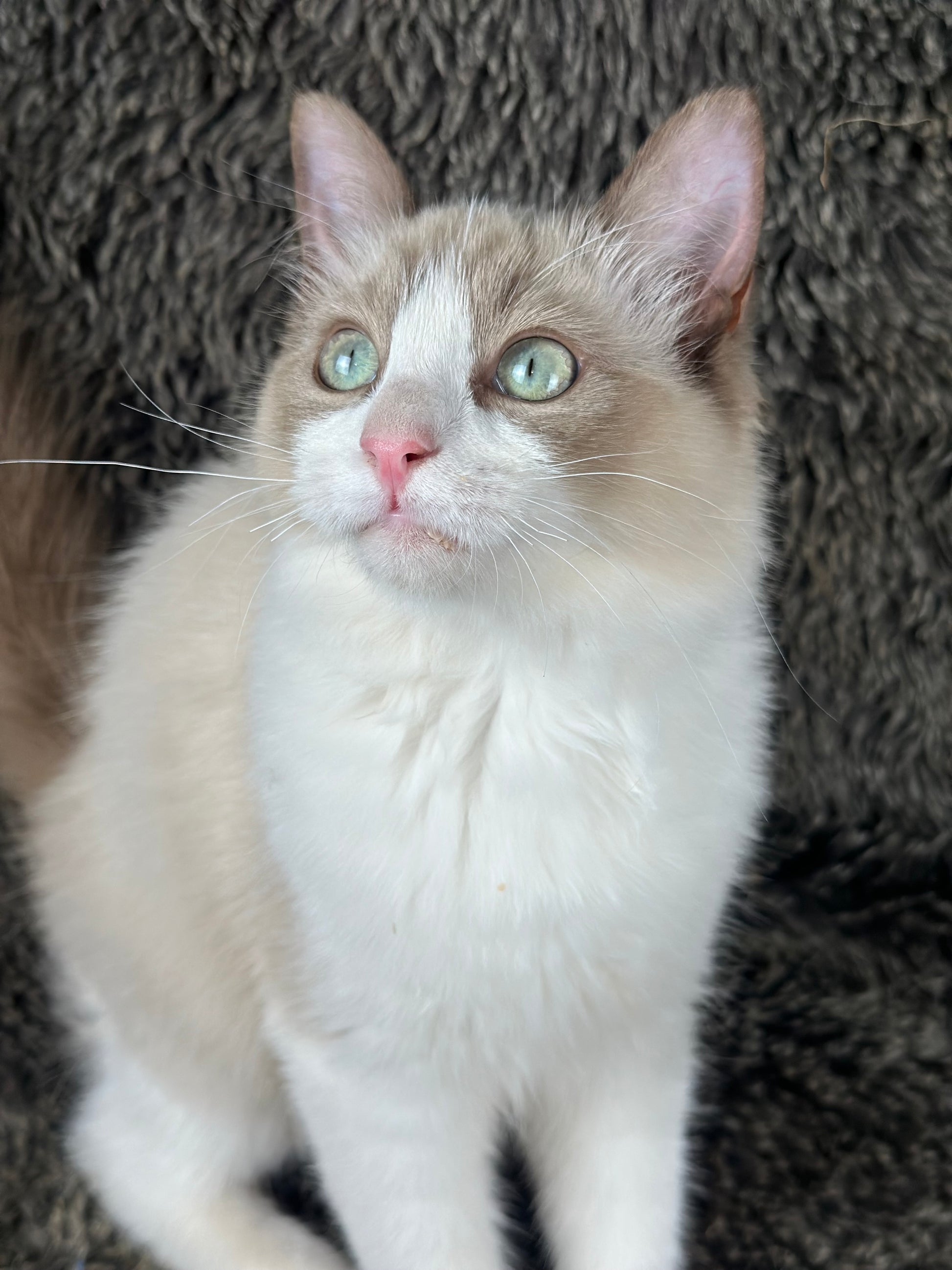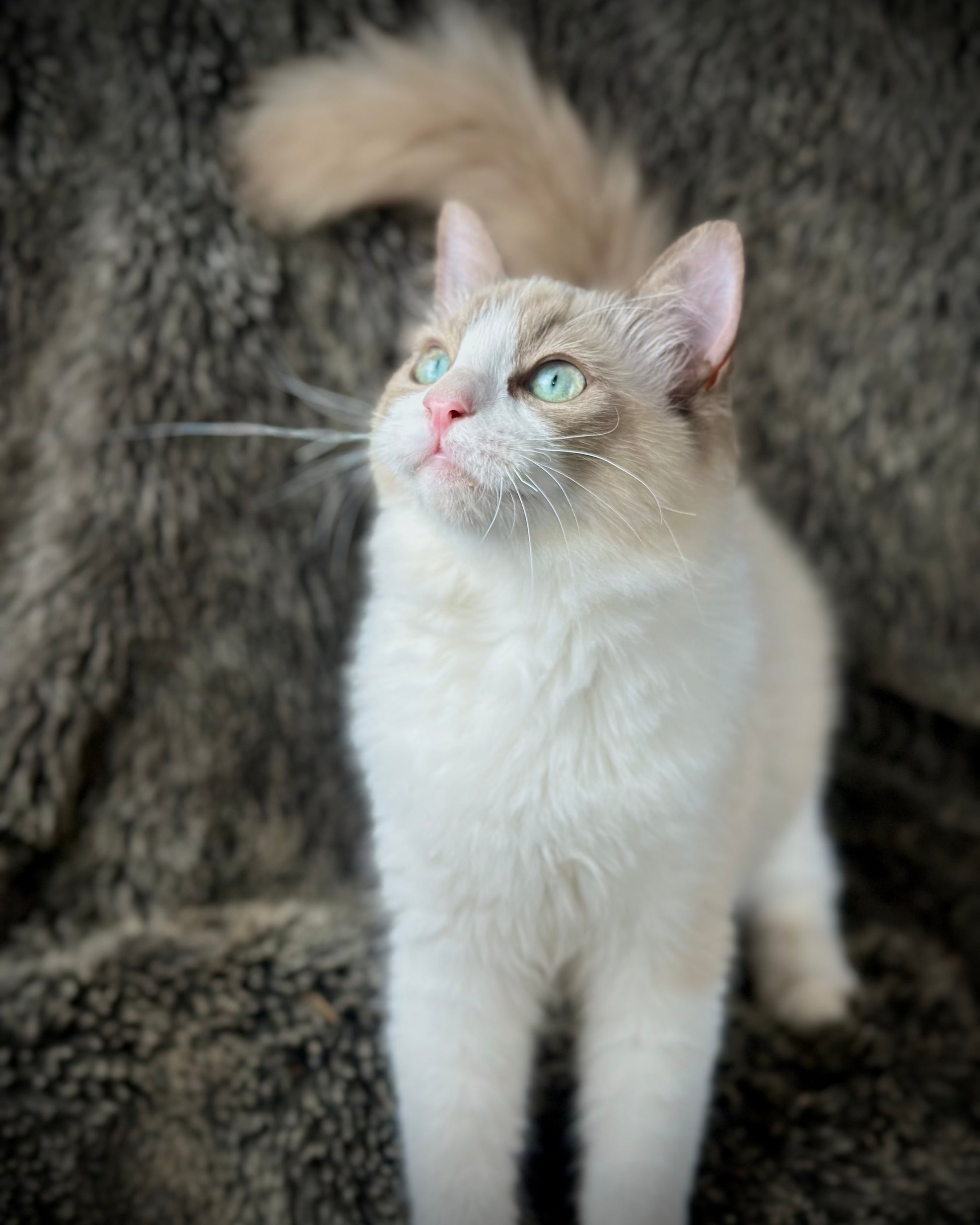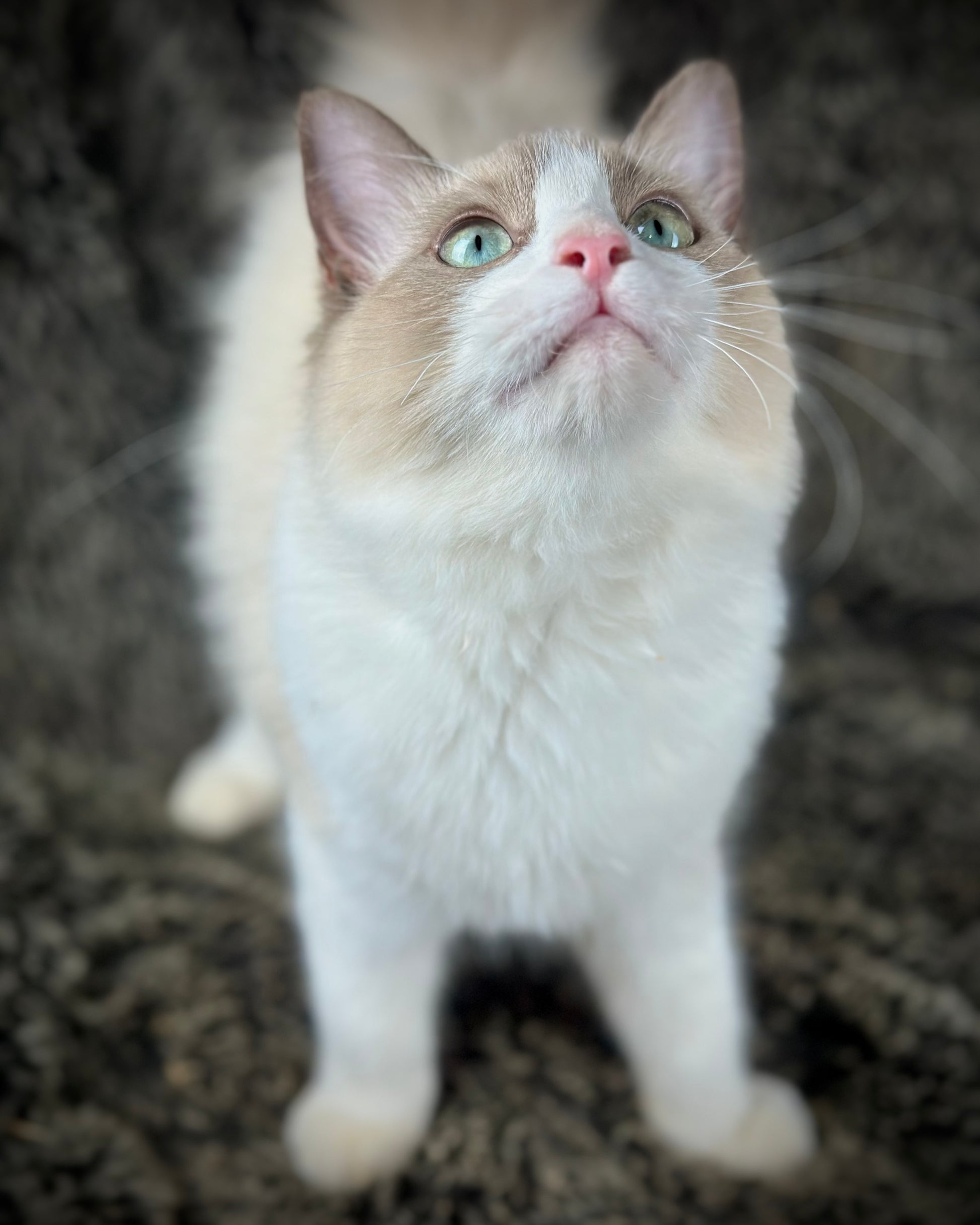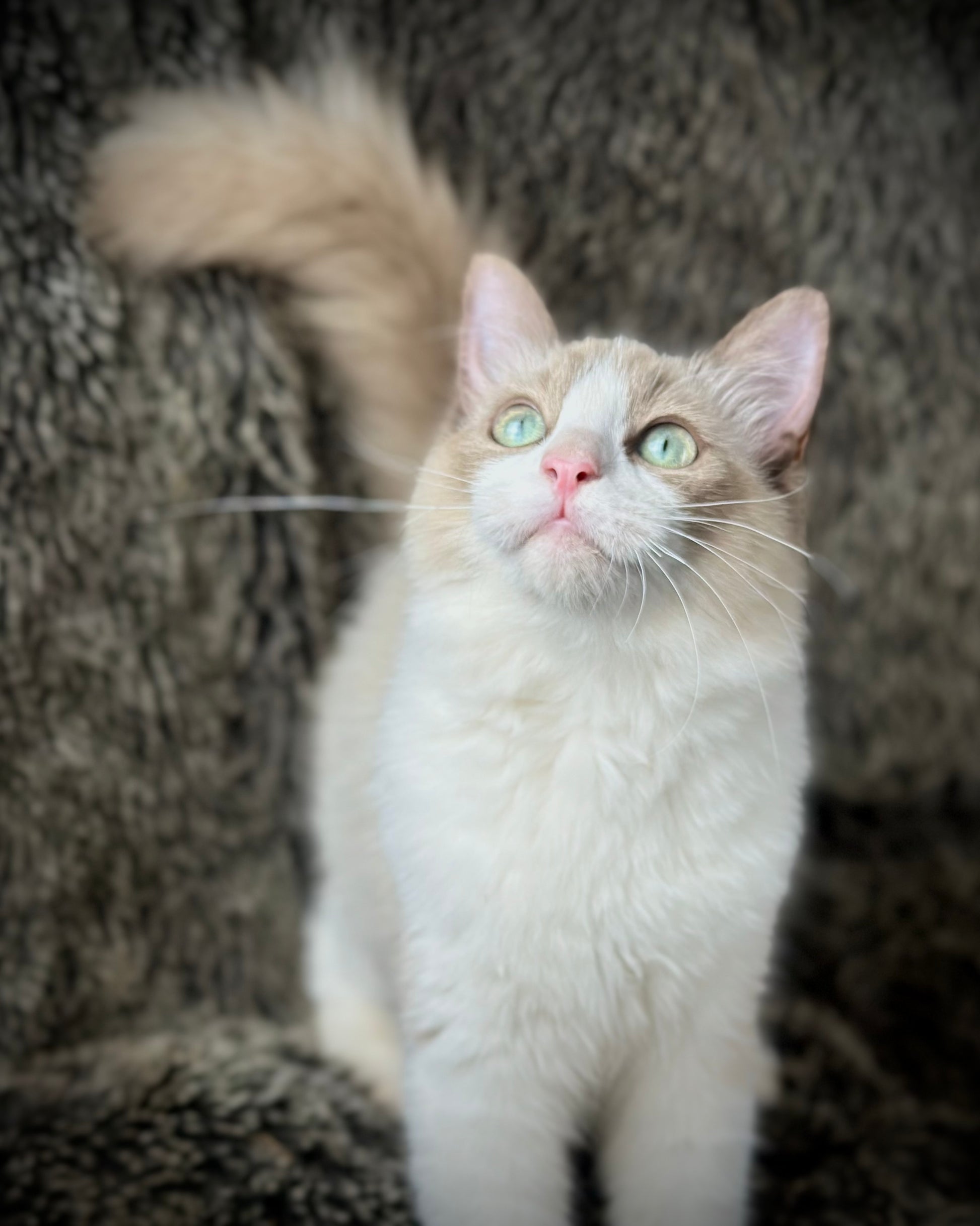 Freedom is a little free spirit full of purrs and play. Just look at those EYES!!!!!! She’s also a hard to find color/pattern combination. She will darken to a gorgeous rich caramel when her color comes in later. She’s a beauty.