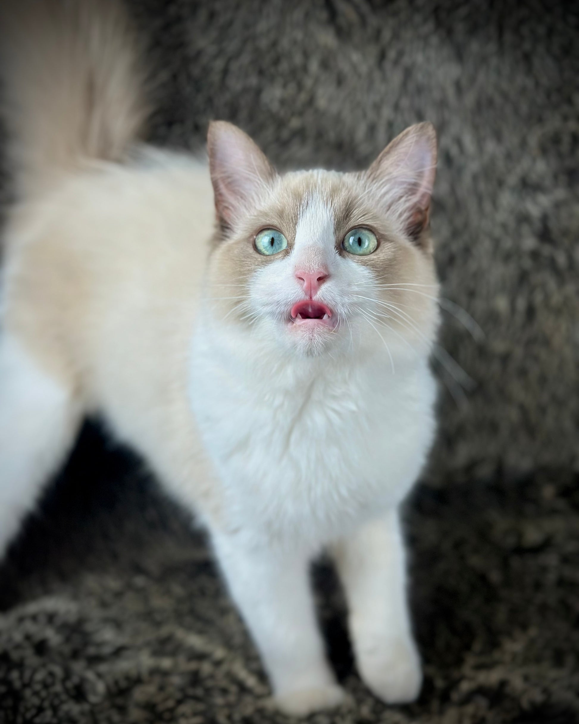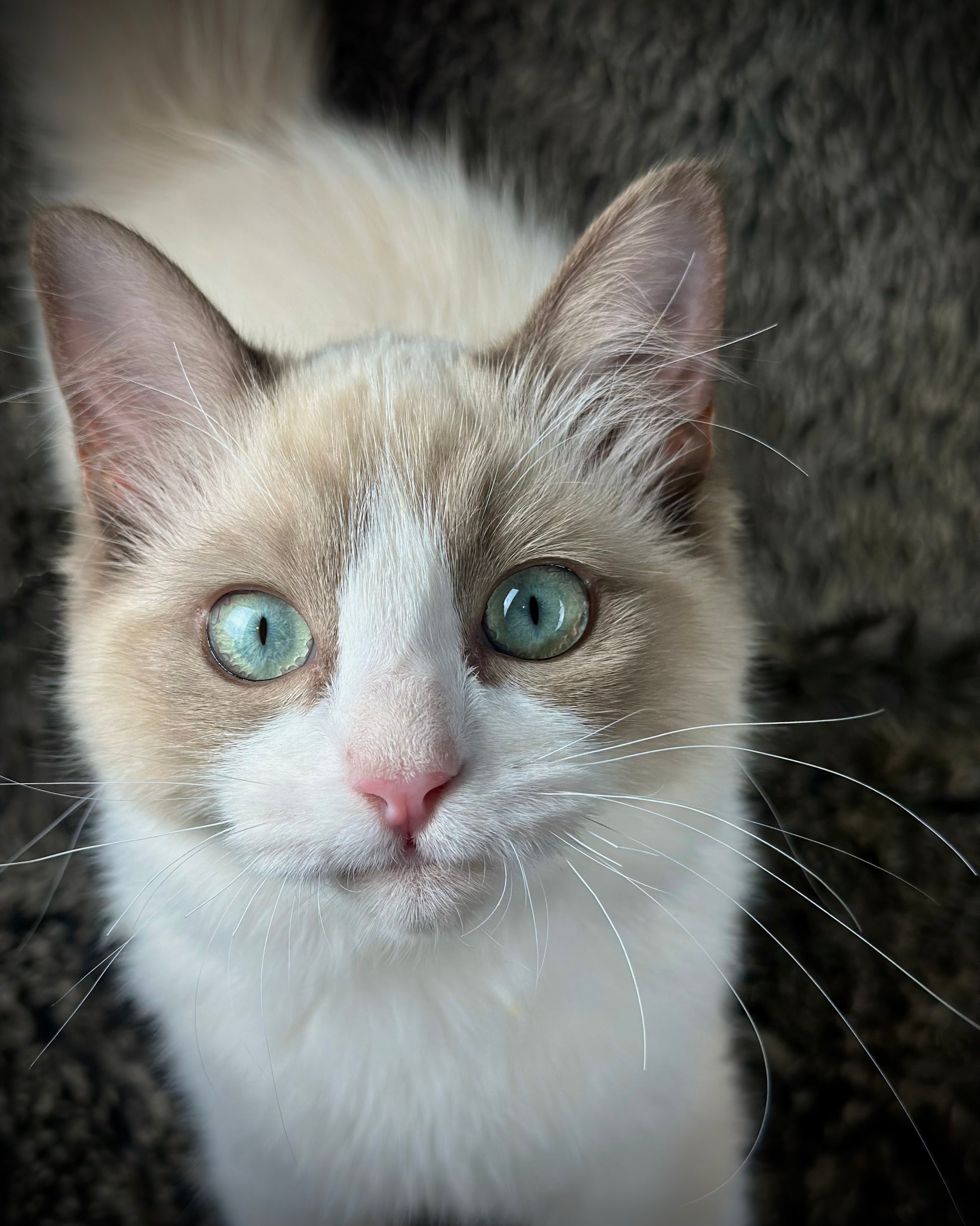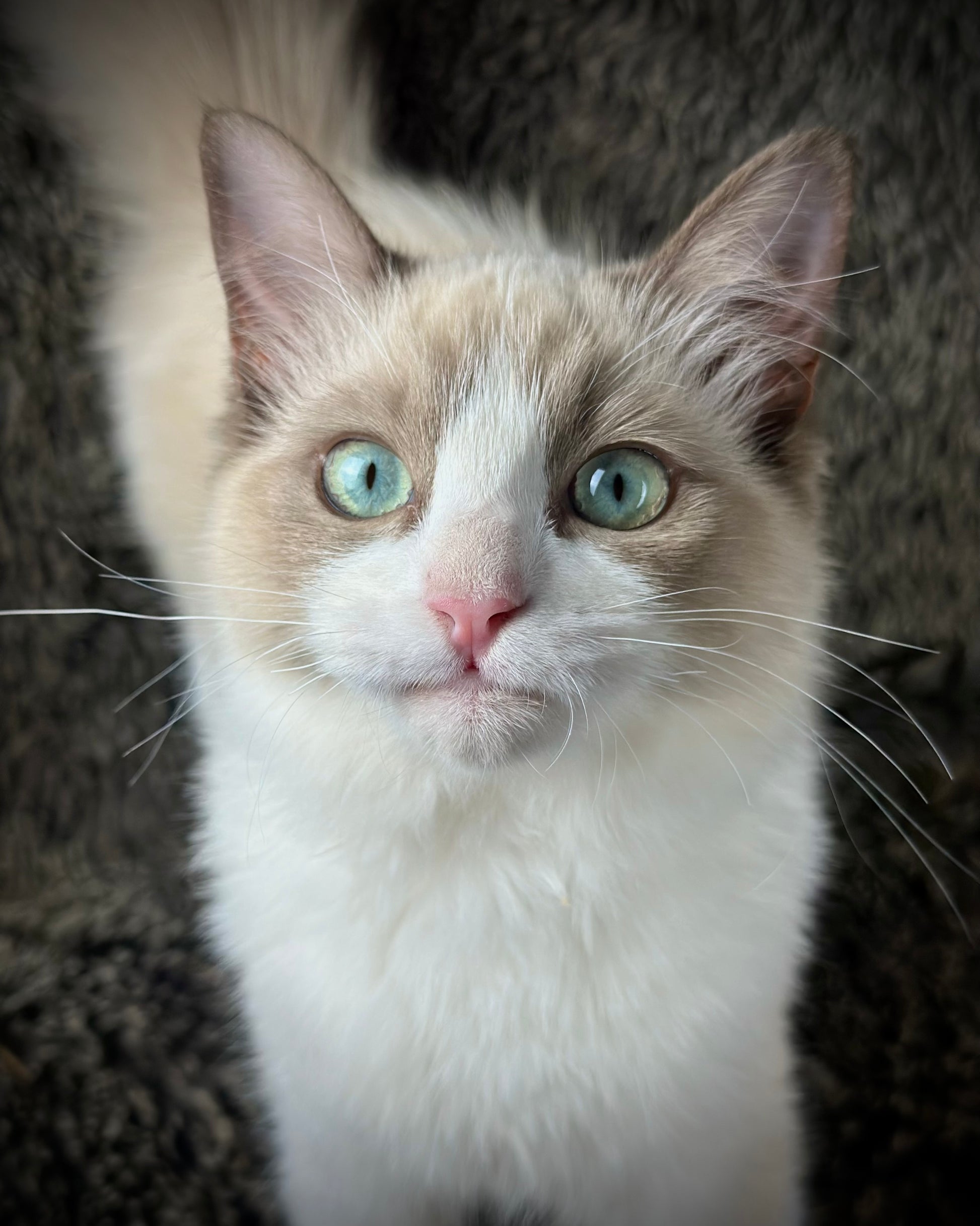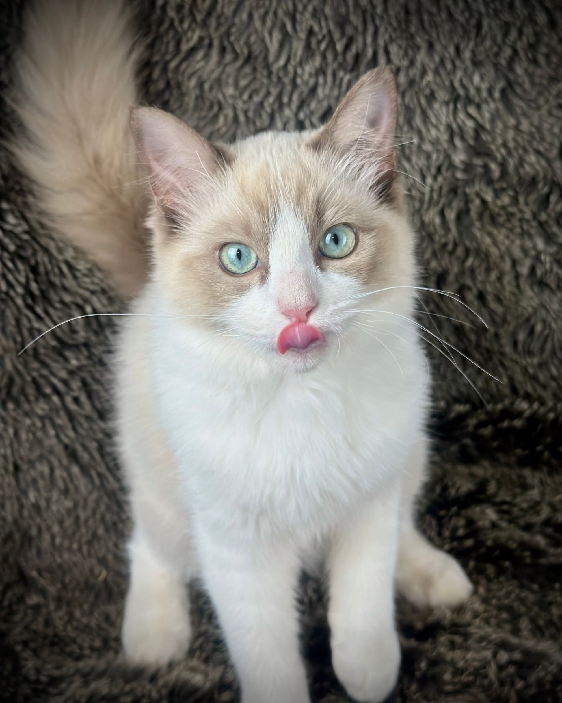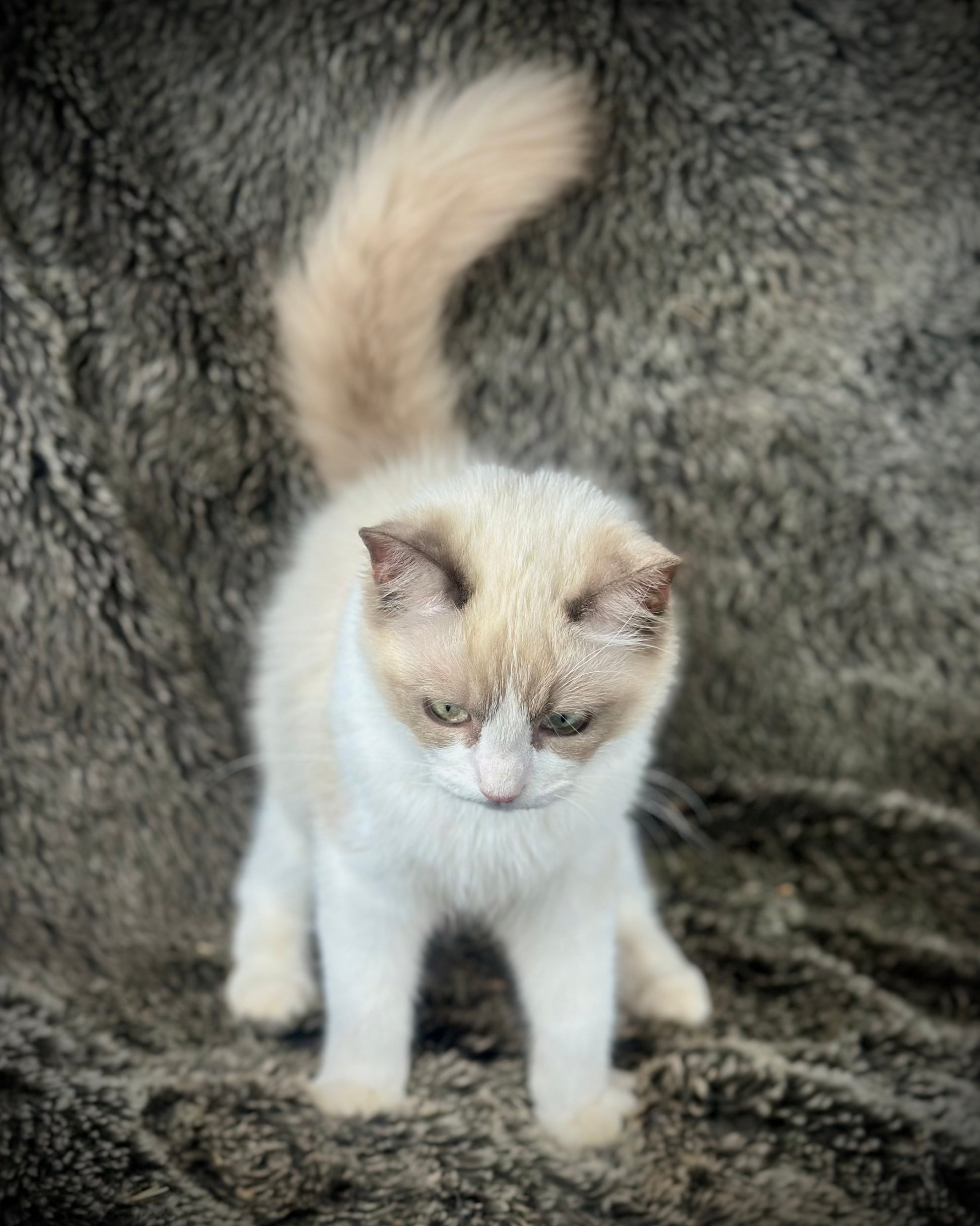 Freedom is a little free spirit full of purrs and play. Just look at those EYES!!!!!! She’s also a hard to find color/pattern combination. She will darken to a gorgeous rich caramel when her color comes in later. She’s a beauty.
