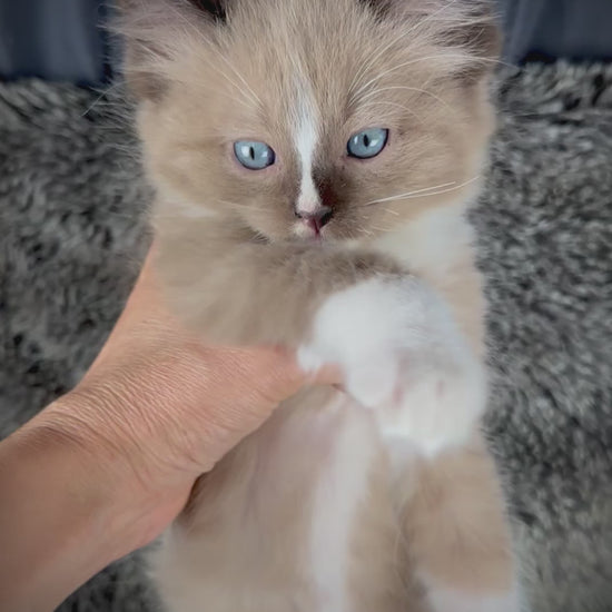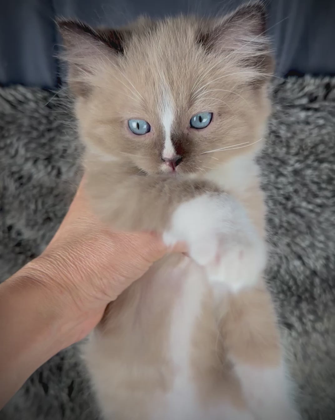 Look at that Blaze! He is just the cutest little guy, when he grows up he will be a dark chocolate show stopper. With all the ragdoll floppycat traits he is a special little guy.