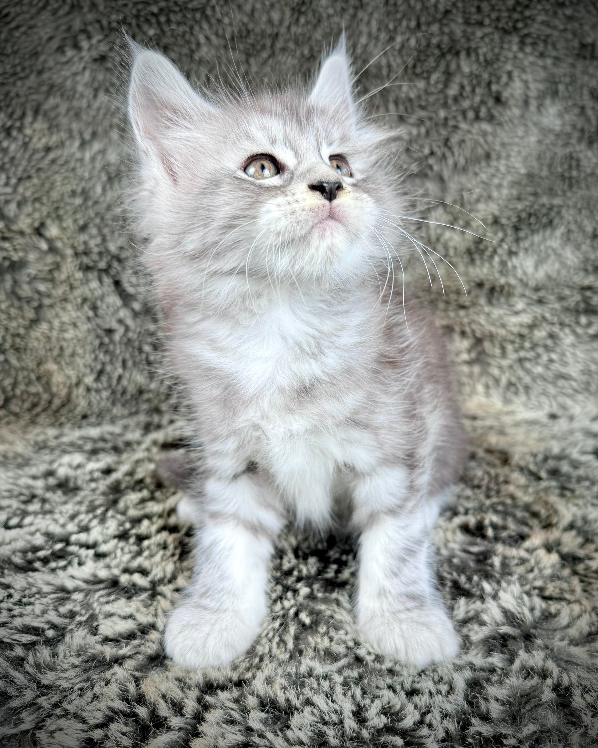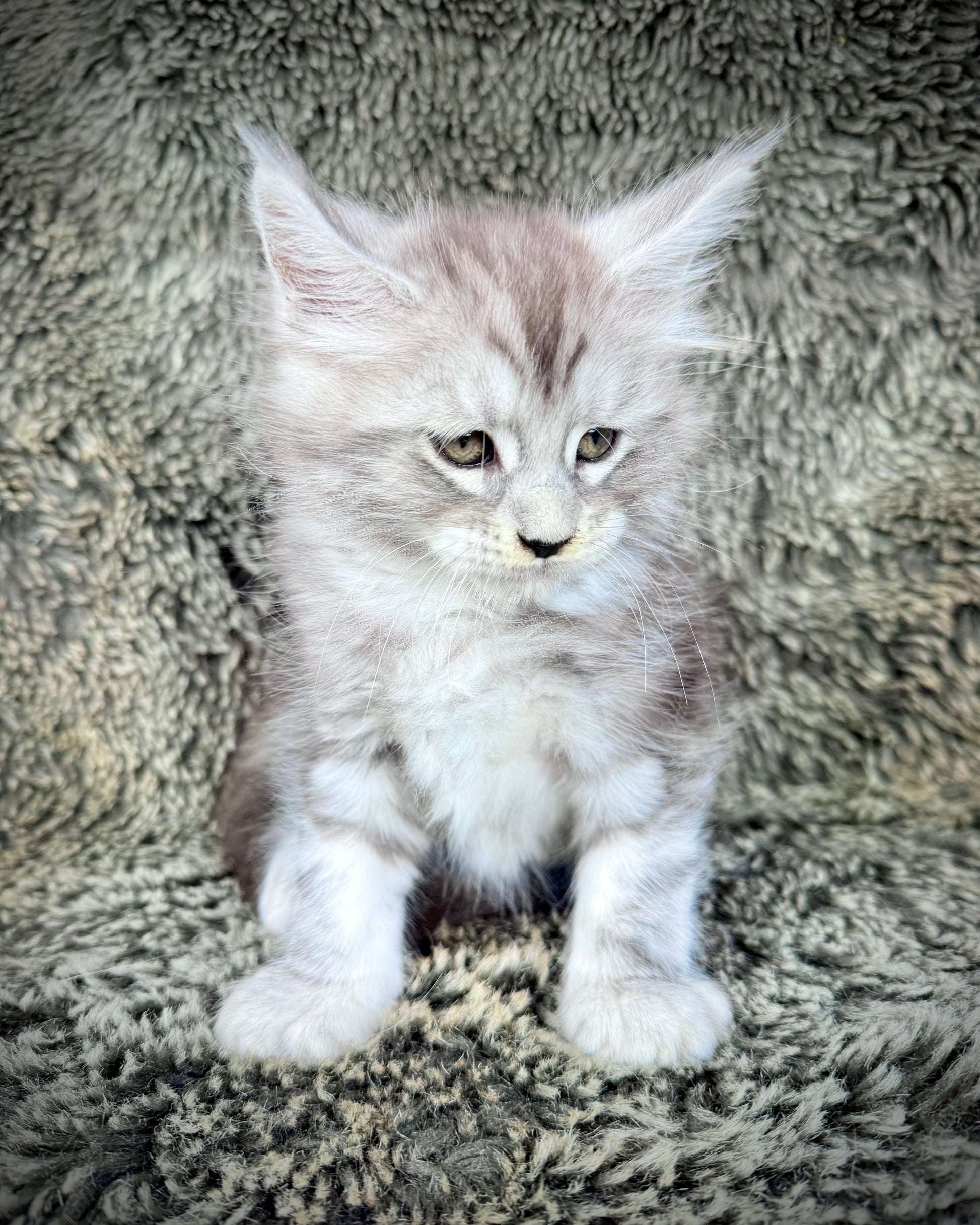 Smokey is a stunning smoke-colored Maine Coon kitten with a soft, silvery ruff that glows around his neck like a little lion’s mane. He’s incredibly affectionate and irresistibly sweet — the kind of kitten who melts into your arms and purrs the moment you pick him up. Smokey loves nothing more than curling up in your lap for long cuddles and quiet company. A true sweetheart with a gentle soul, he’ll make the perfect loving companion for anyone looking for a loyal and snuggly friend. 🩶🐾